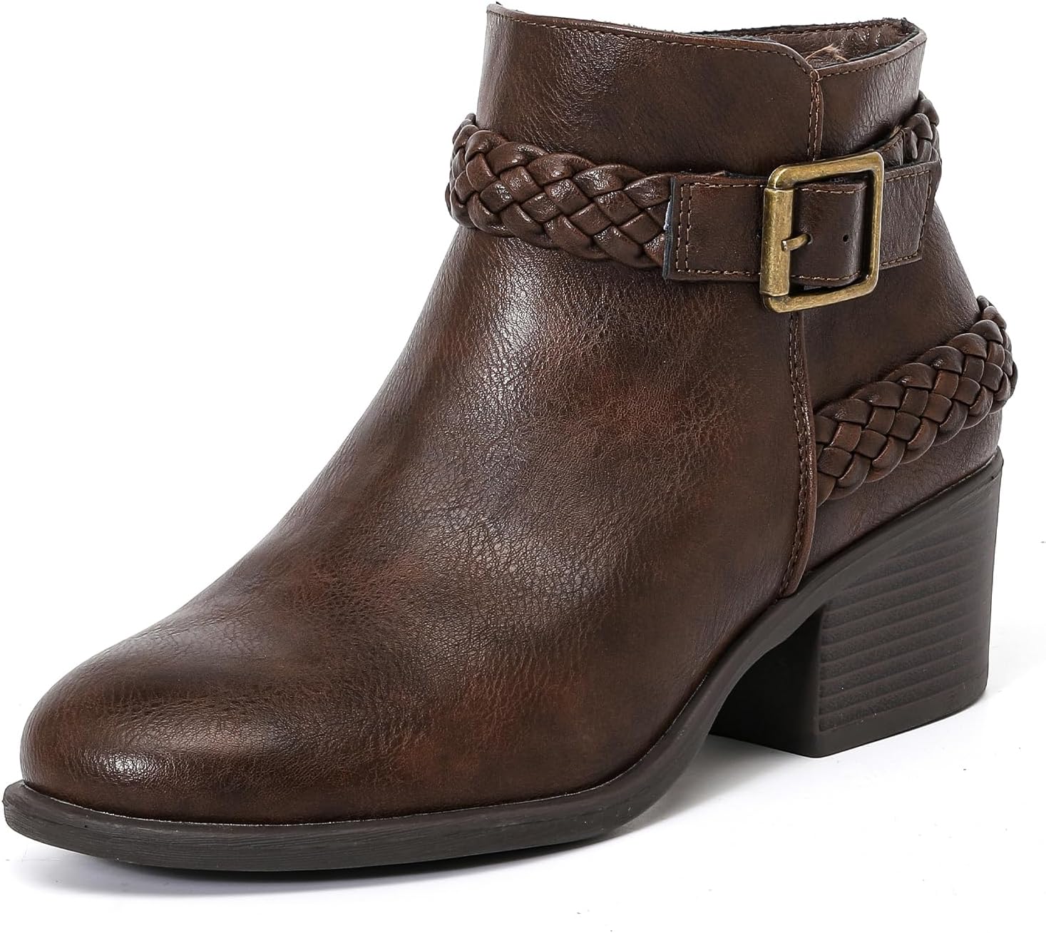 Luoika Women's Wide Width Ankle Boots - Black Brown Short Boots Block Low Heel Side Zipper Booties.