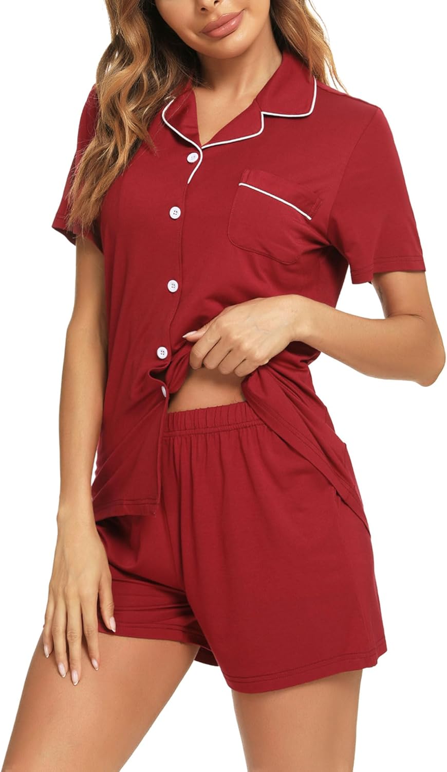 Womens Pajama Set Short Sleeve Button Down Pjs Soft 2 Piece Classic Sleepwear