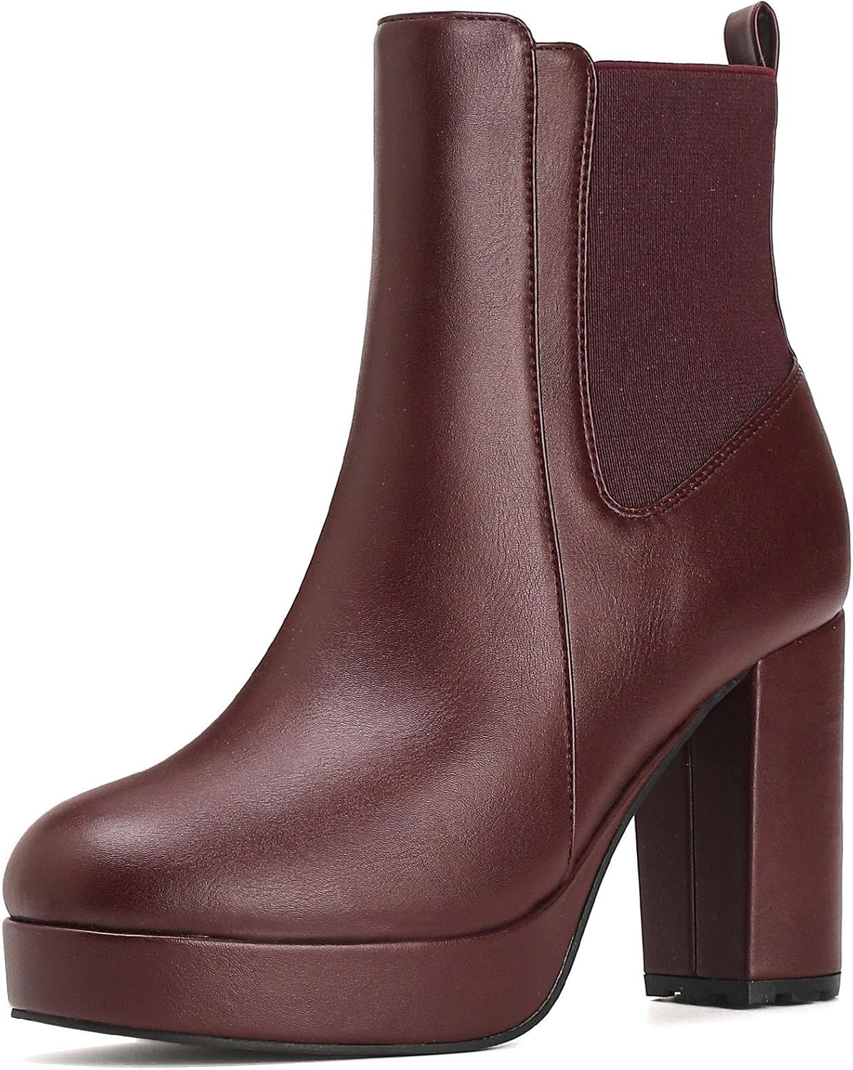 Putu Women's Chunky High Heel Ankle Boots Dressy Booties with Zipper Round Toe Platform Booties