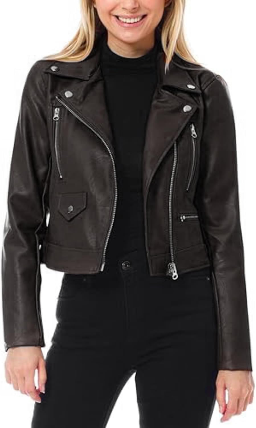 2025-26 Women's Long Sleeve Zipper Closure Moto Biker Real Lambskin Leather Jacket…