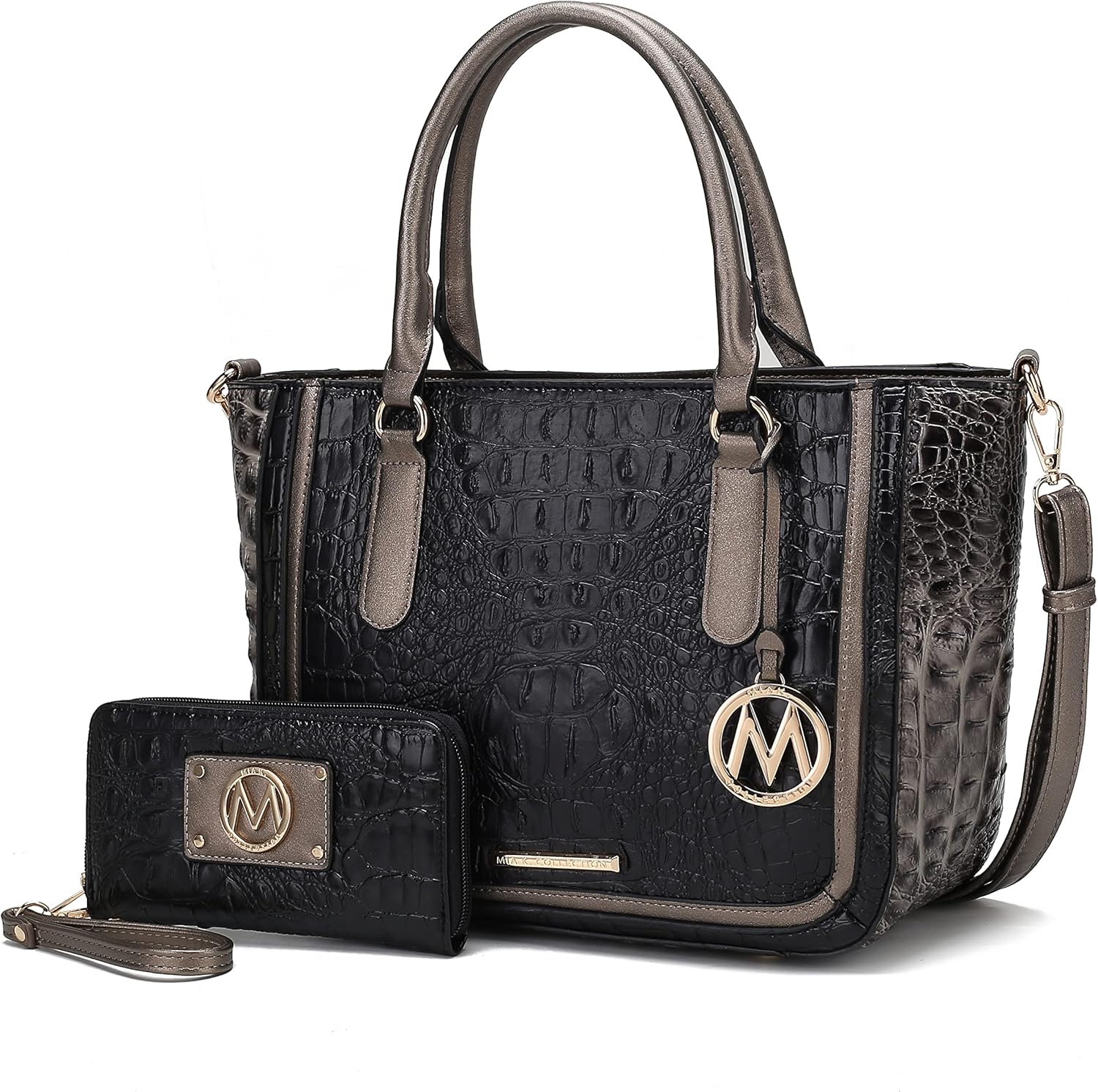 MKF Collection Satchel Bag for Women’s Crocodile Embossed Vegan leather Crossbody Tote Handbag Top-Handle Purse by Mia K