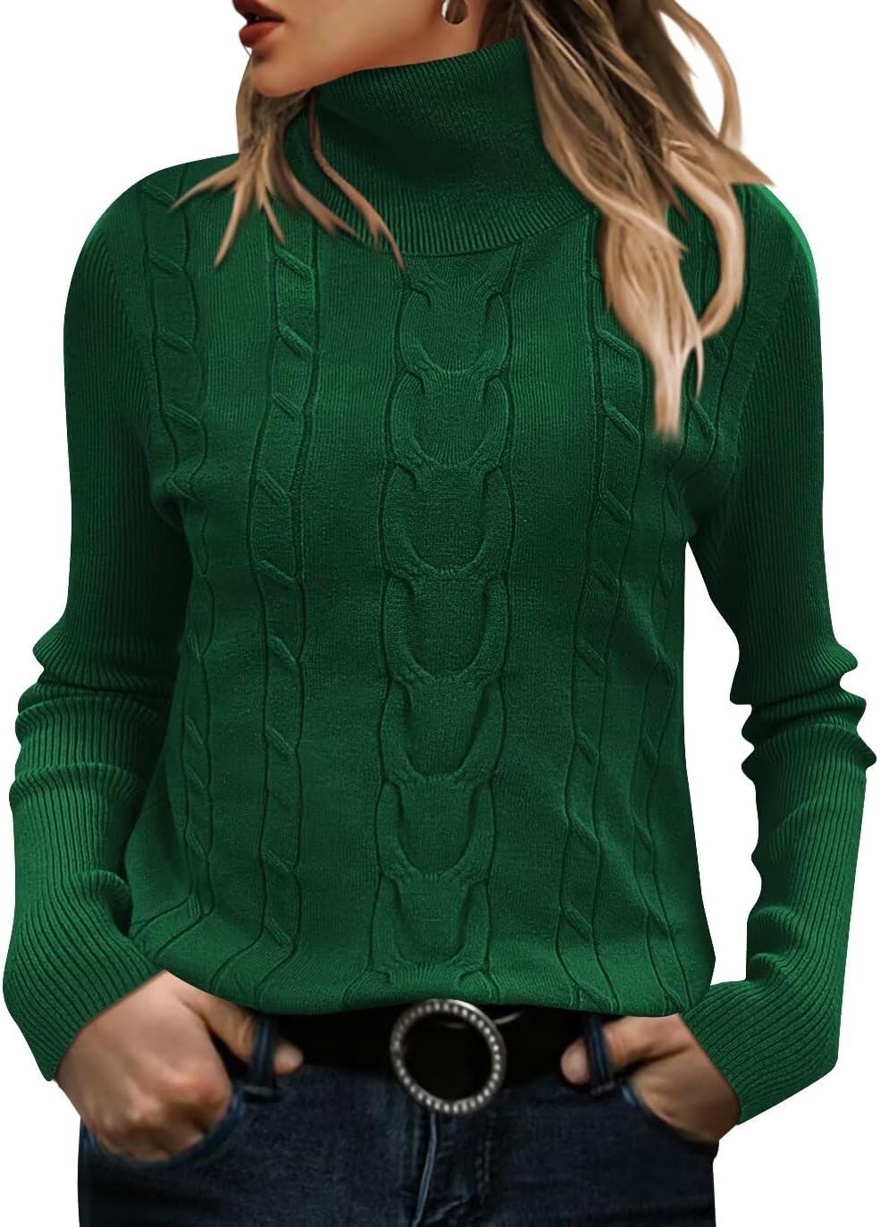 FEKOAFE Sweaters for Women 2025 Long Sleeve Ribbed Knit Solid Color Turtleneck 2025 Fall Winter Pullover Sweaters
