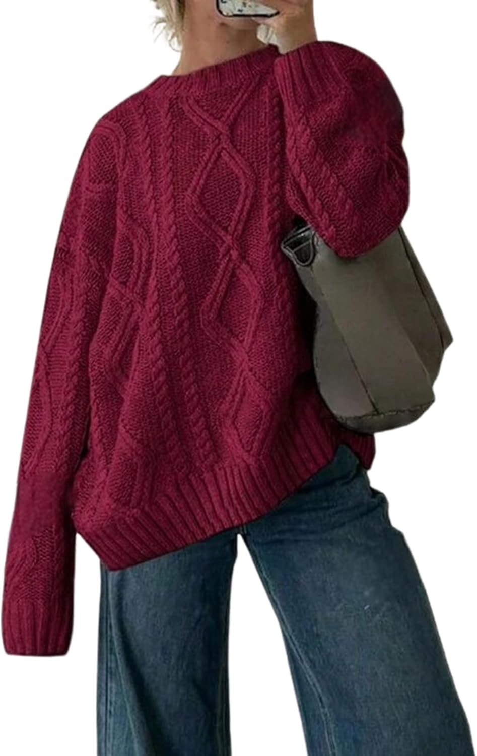 ZAFUL Cable Knit Sweaters for Women Crewneck Casual Knit Pullover Sweater Long Sleeves Jumper Tops