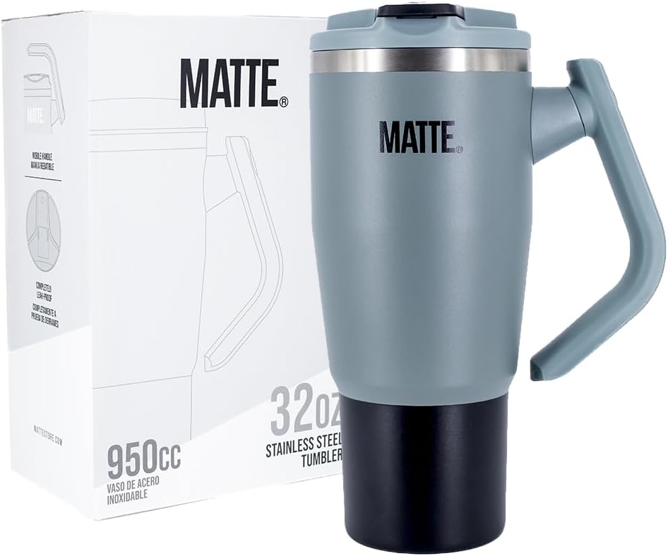 Matte 32 oz tumbler with handle and straw - Leak Proof Tumbler - Insulated Tumblers - Stainless Steel Tumbler - Hot and Cold Drinks (Steep Cliff Gray, 32oz)