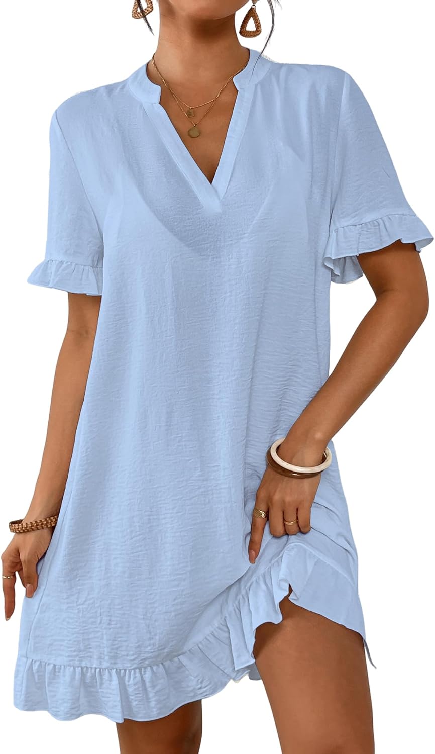 Bsubseach Womens Swimsuit Cover Up Shirt Ruffle Short Sleeve Bathing Suit Coverups V Neck Flowy Ruffled Beach Bikini Dress