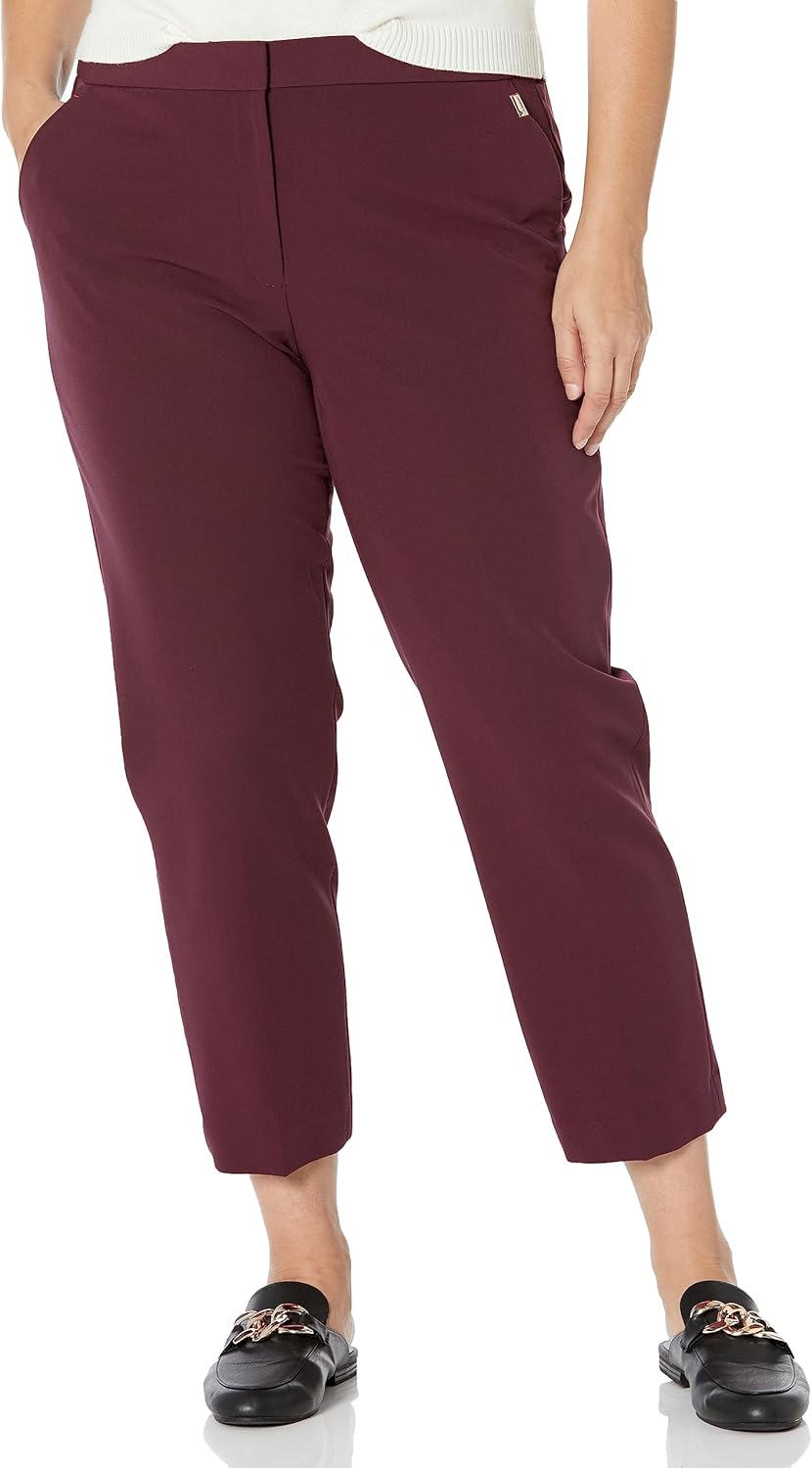 Calvin Klein Womens Lux Stretch Straight Leg Belted 2 Button Tab PantLeggings