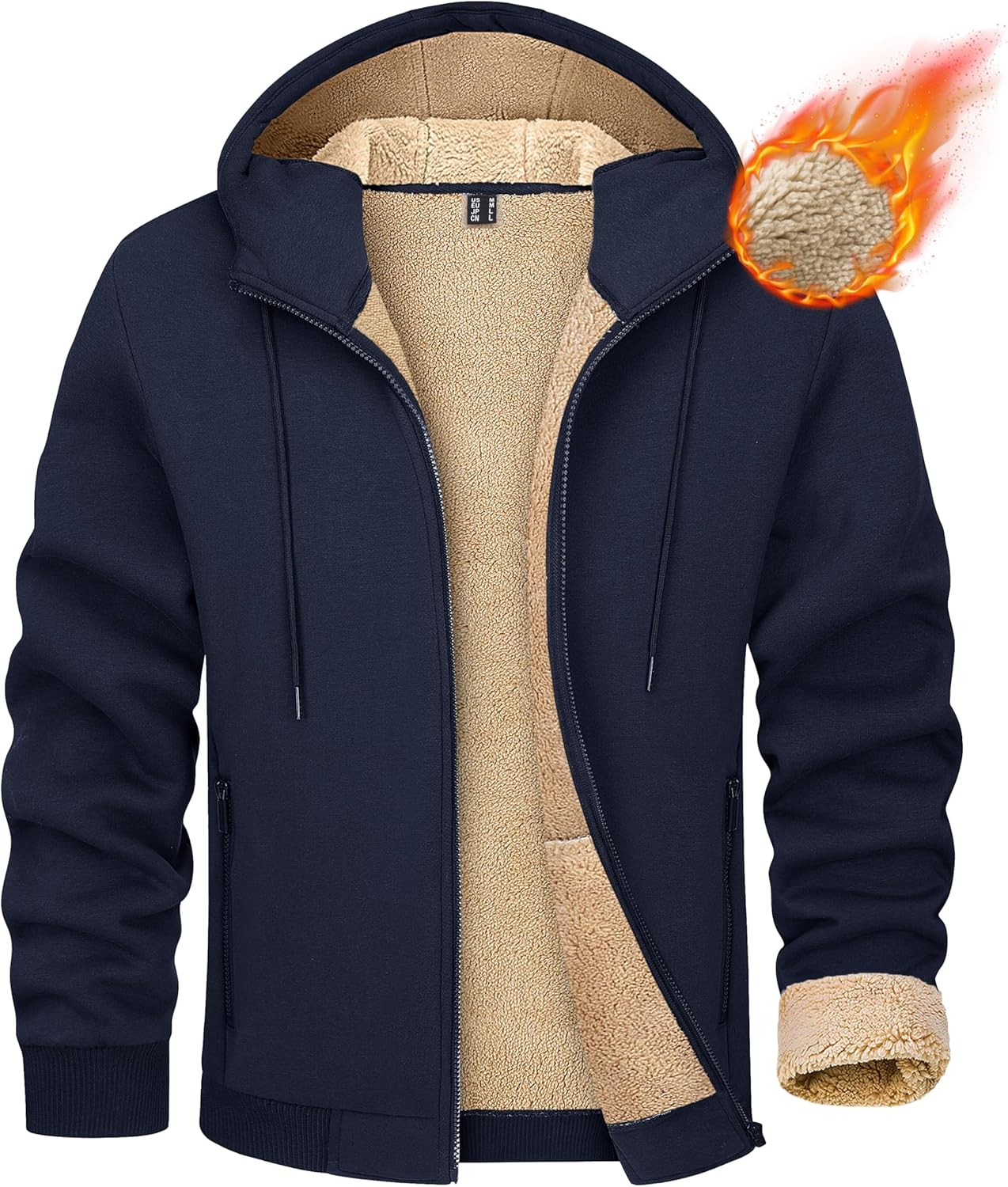 MAGCOMSEN Men's Fleece Hoodie Sherpa Jacket Full Zip Warm Fuzzy Windproof Winter Coats Hooded Outwear