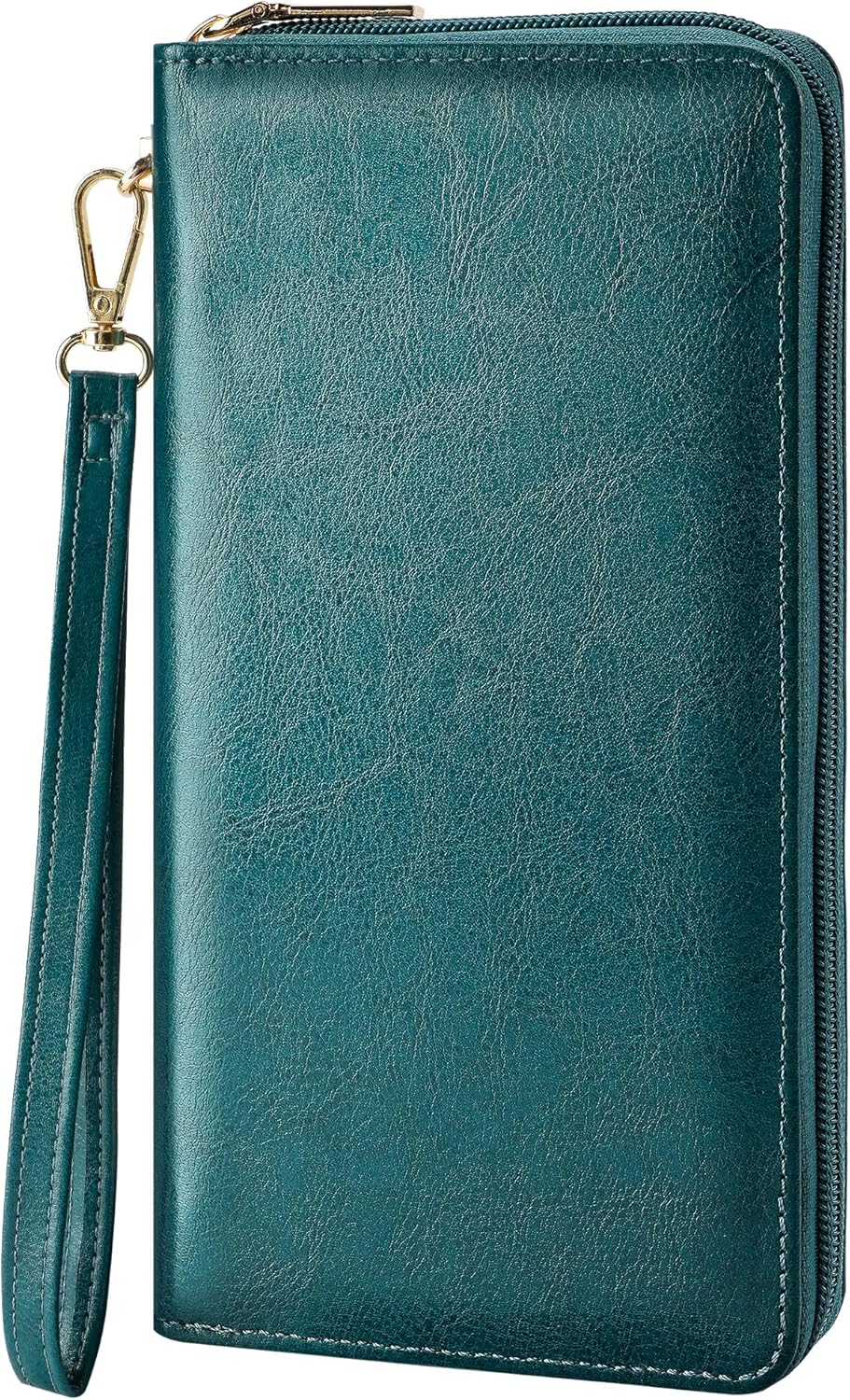 Chelmon Women's Vegan Leather Clutch Wallet with Zip, Hand Strap, Large Capacity