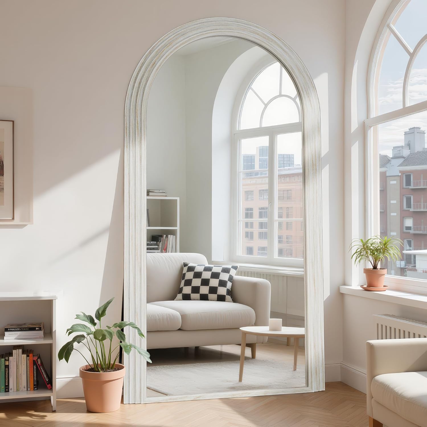 Antok Full Length Mirror 76"×41" Floor Mirror Standing Tall Mirror, Arched Stand up Large Wall Mirrors, Freestanding Full Body Mirrors for Bedroom Living Room Wood Vintage Style White