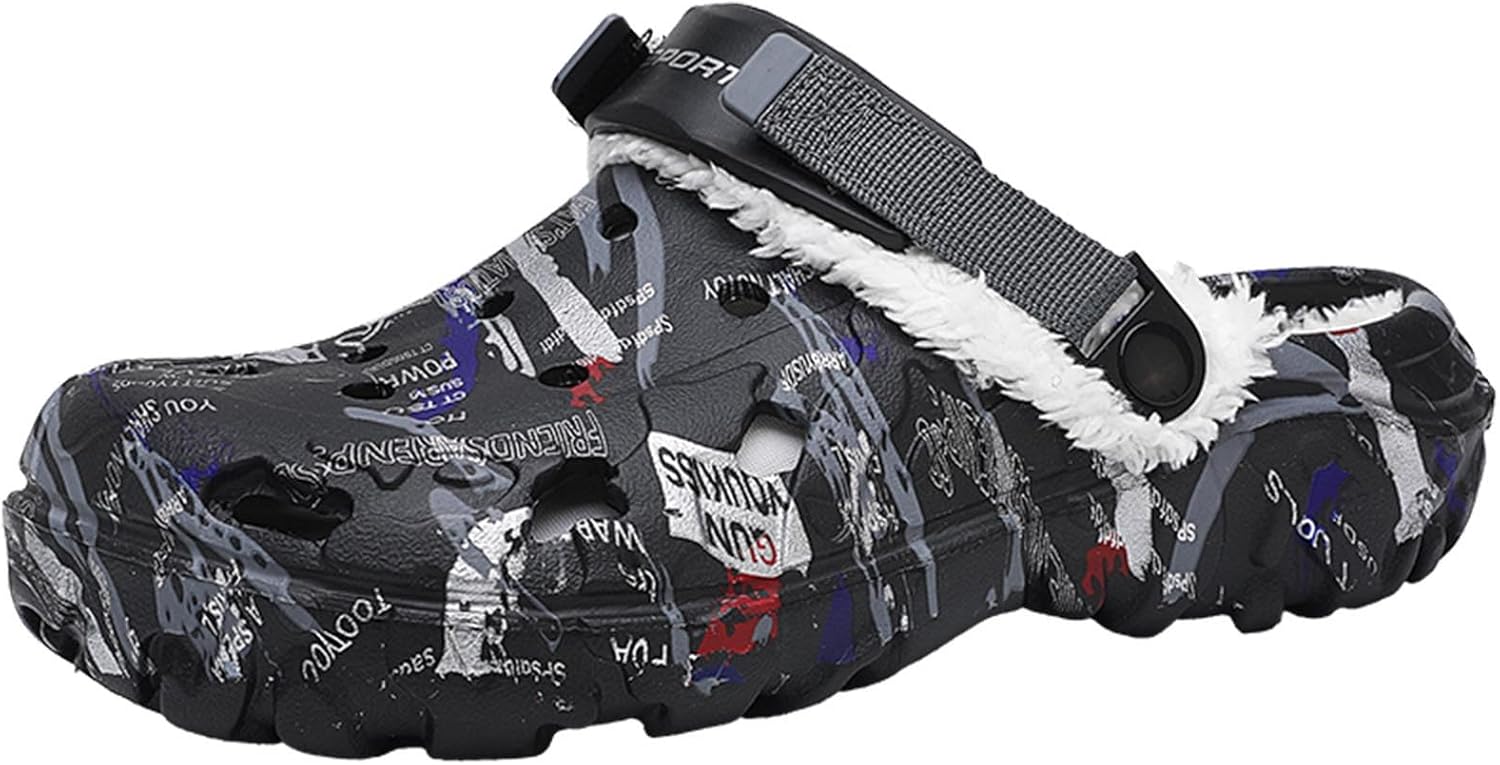 Meidiastra Women's Mens Fur Lined Clogs Waterproof Non Slip Garden Shoes Warm Plush House Slippers Indoor Outdoor Mules