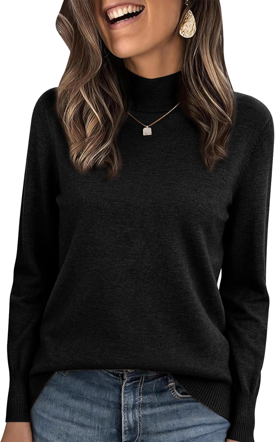 PEHMEA Women's Mock Neck Sweater Light Wool Blend Slim Soft Pullover Dressy Casual Top for Fall Winter Warm