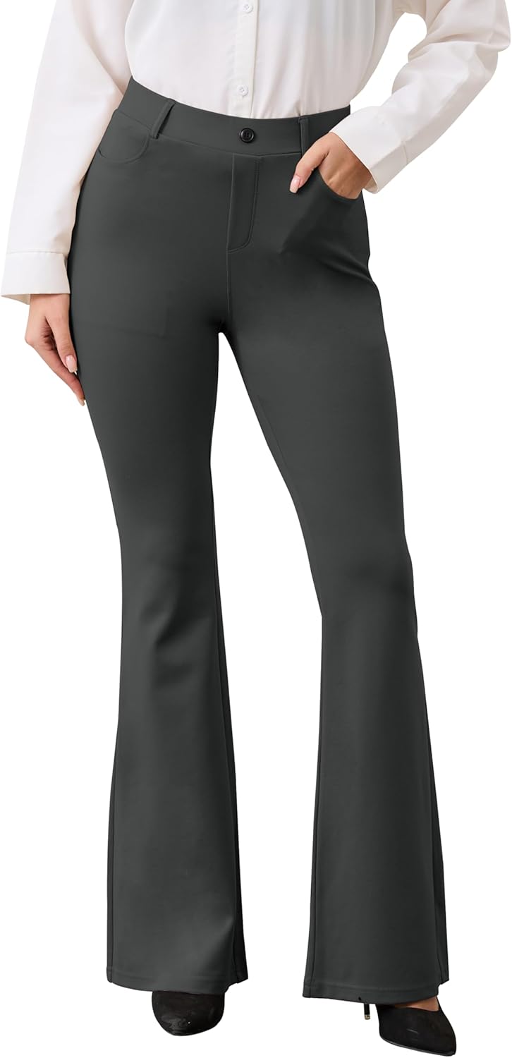 VIMPEP Women’s Classic Yoga Dress Pants High Rise Flare Soft Feeling Pull On Work Yoga Pants for Business Office Work 2102