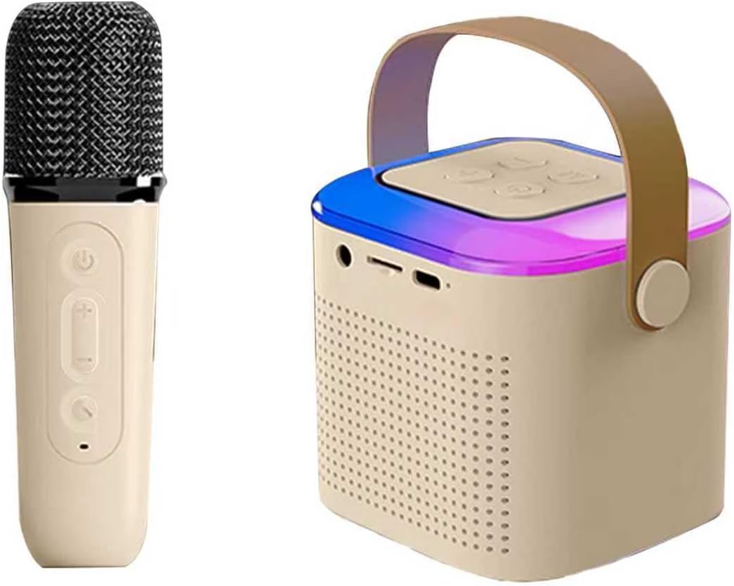 Karaoke Machine for Kids and Adults, Mini Karaoke Bluetooth Mic Singing Speaker with Wireless Microphones and 7 Color Lights, Toys for All Phones, Birthday, Children's Day Gift, Family Party (Beige)
