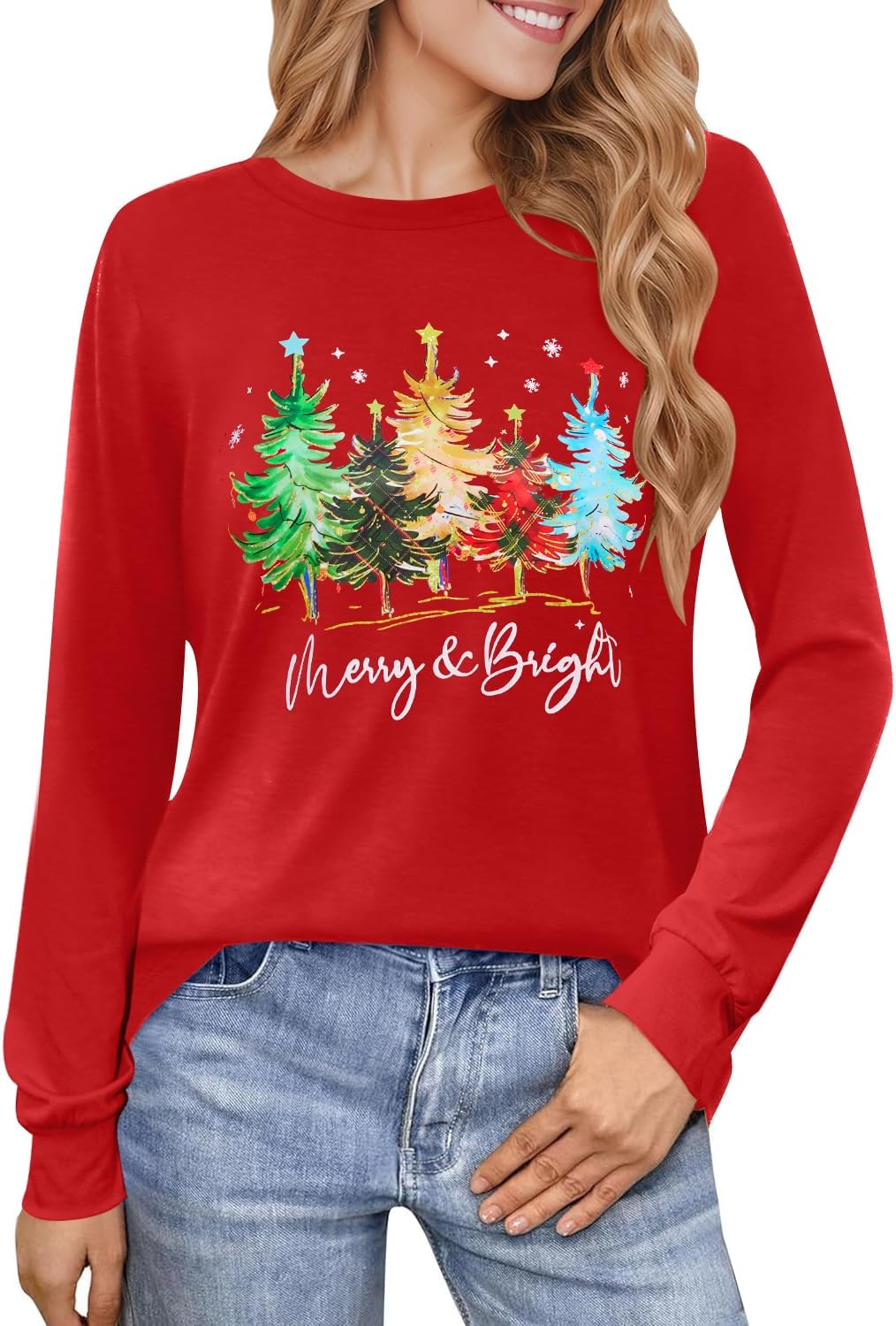 For G and PL Women's Christmas Crewneck Long Sleeves Shirts Graphic Printed Funny Tops S - XXL