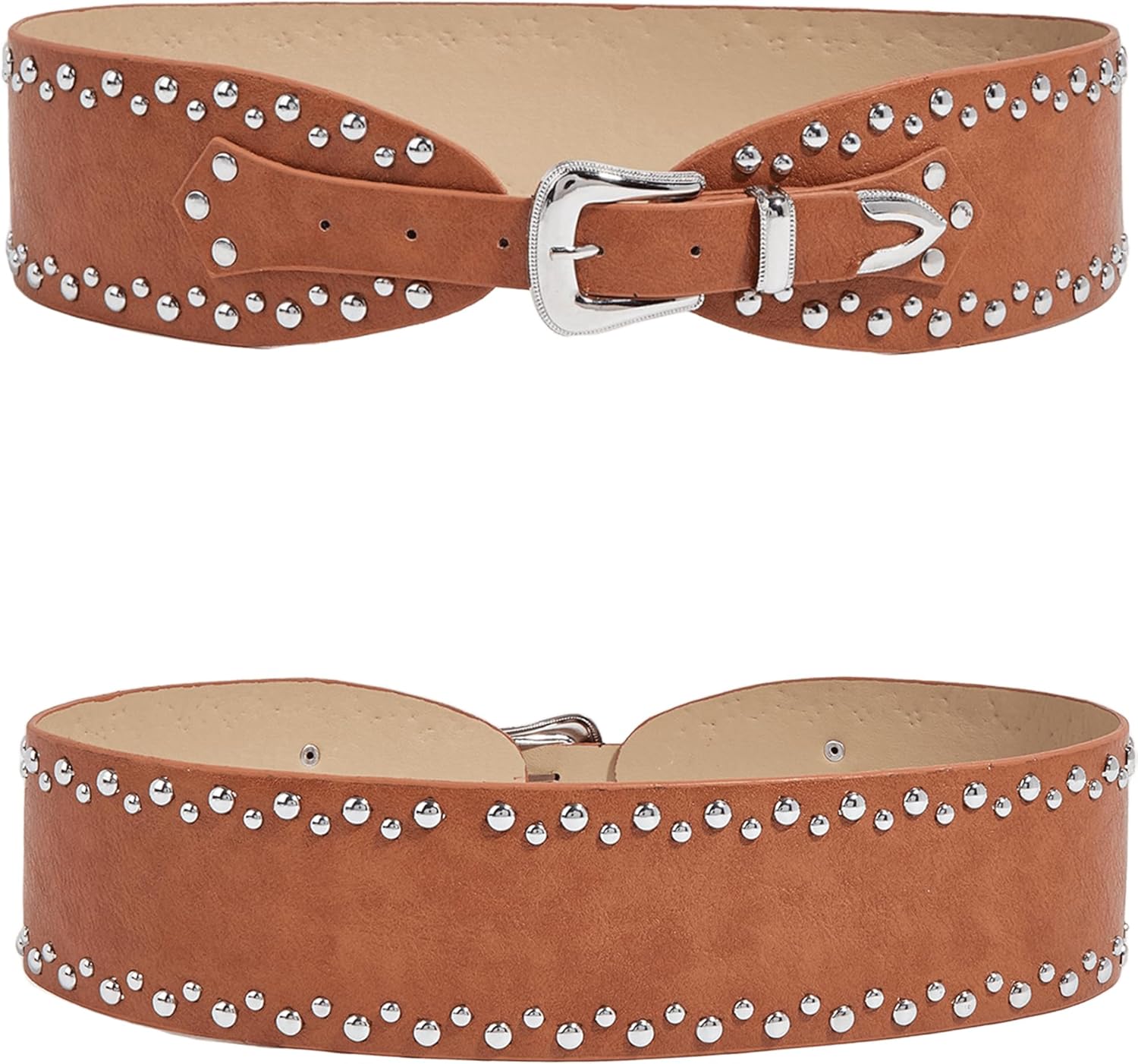 IZUS Women Country Belt Retro Cowgirl Waist Strap with Western Buckle 3.15in Wide Faux Leather Belts for Coat/Dress