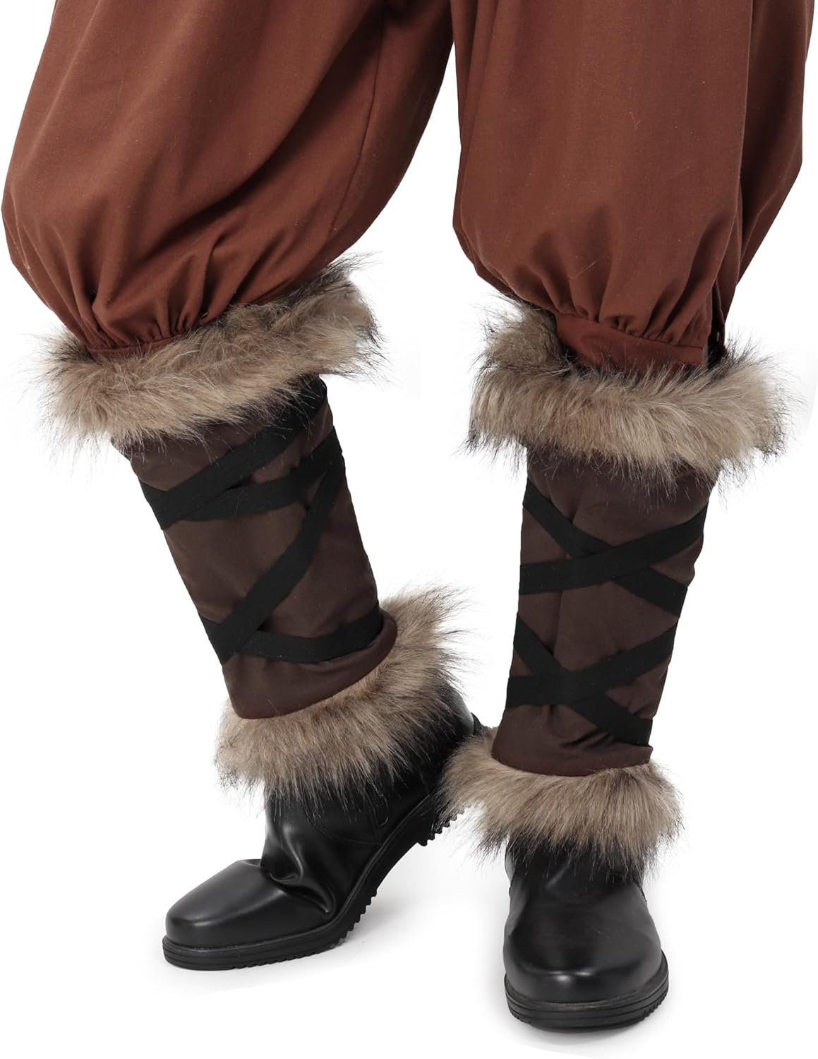 DAZCOS Medieval Fur Leg Wraps for Men Women Renaissance Fuzzy Boot Cover LARP Costume Accessories