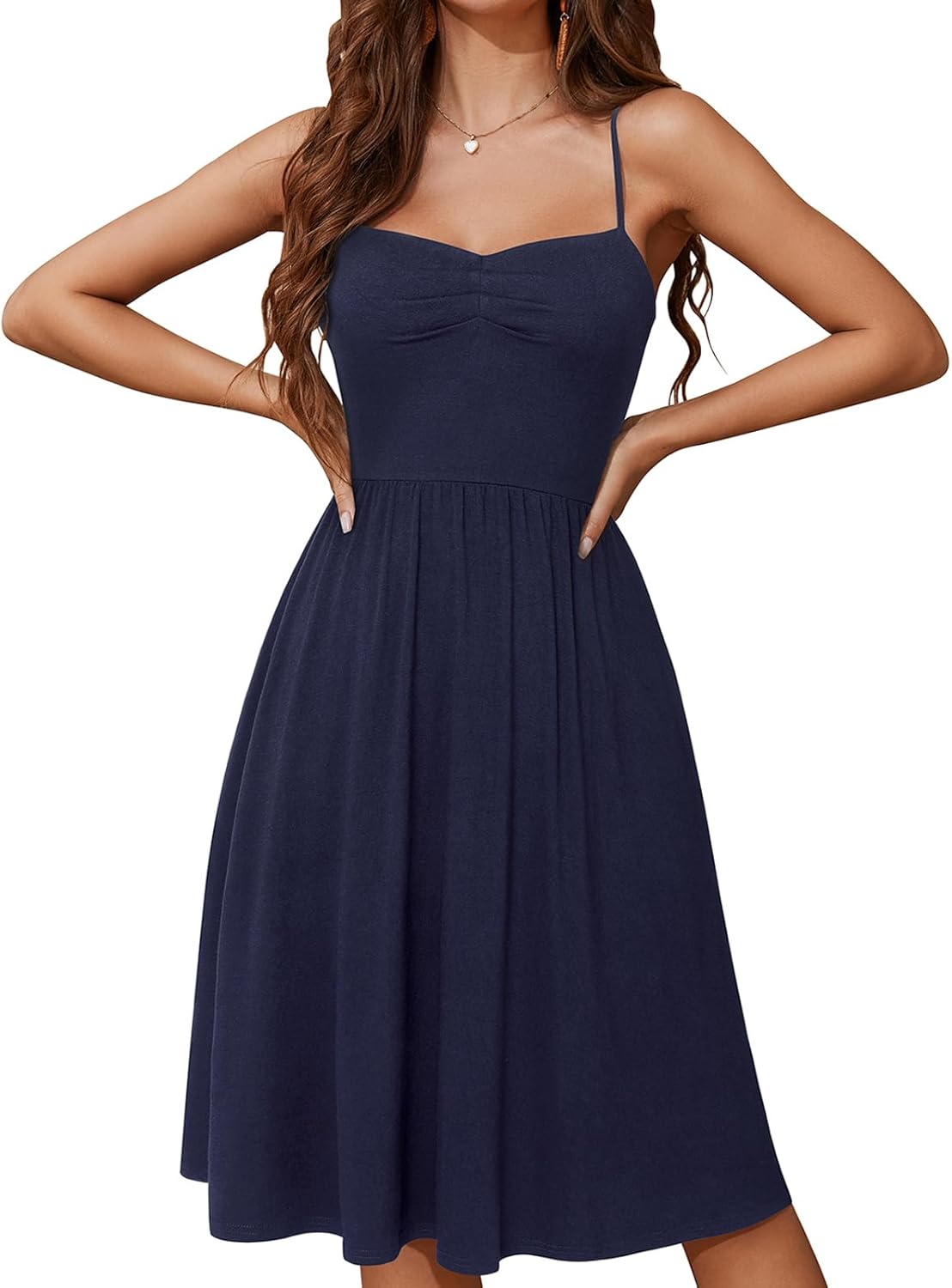 YATHON Summer Casual Dress for Women 2025 Vacation Beach Dresses Adjustable Spaghetti Strap Sundress with Pockets