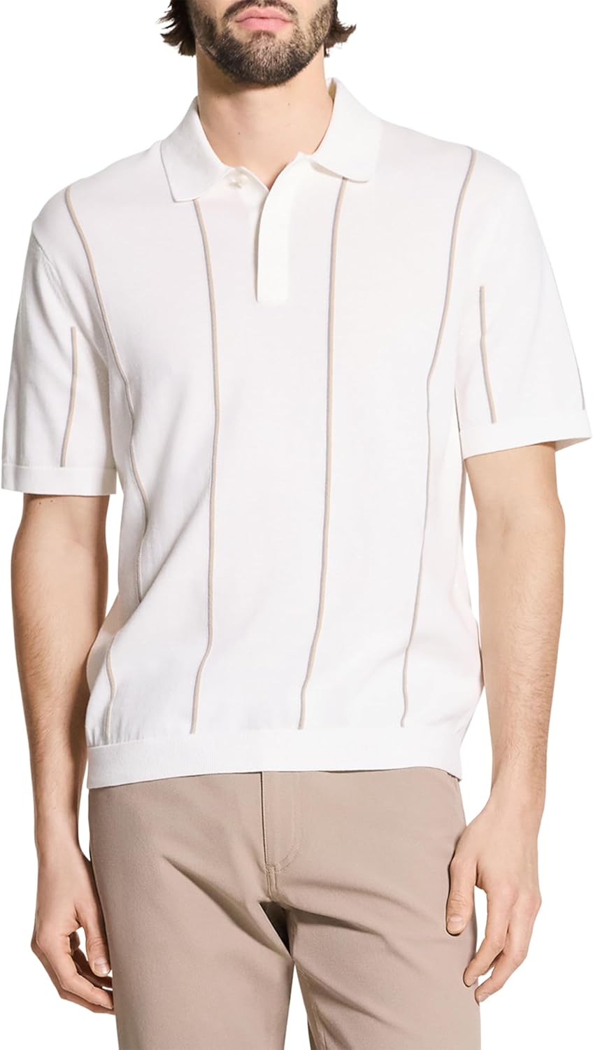 Theory Men's Short Sleeve Polo V Stripe Tee in Tactile Cotton