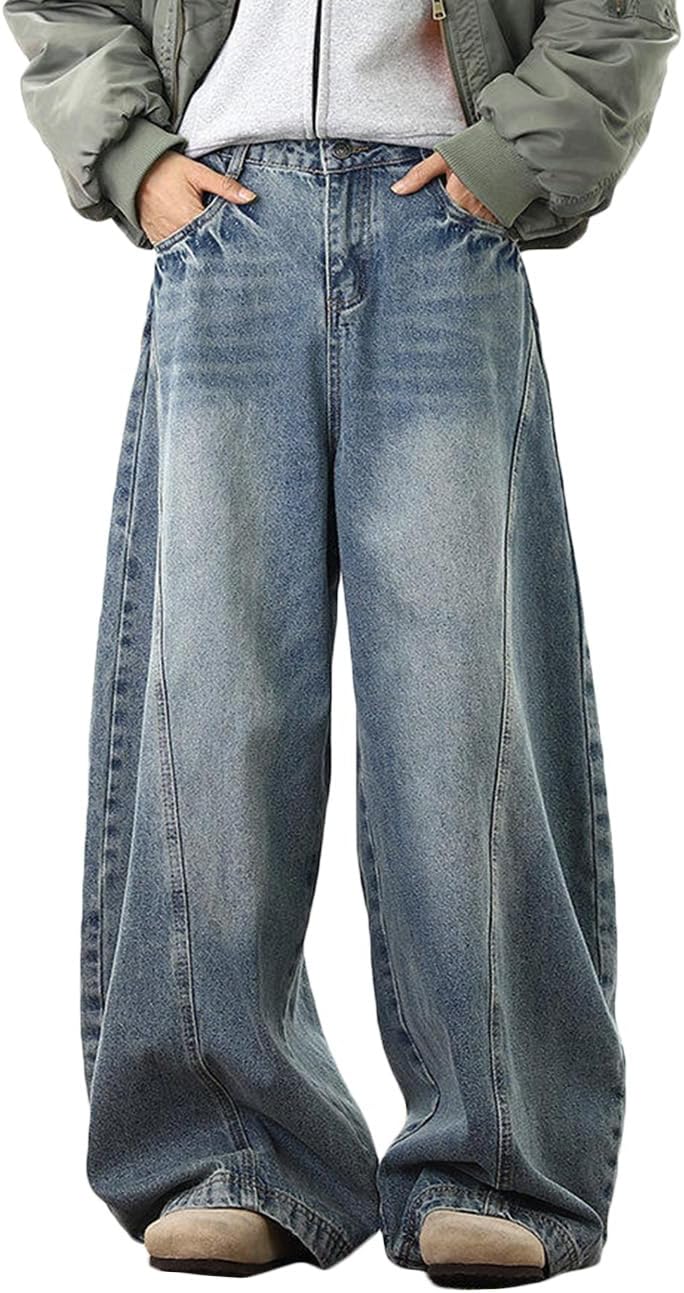 Nutriangee Men's Baggy Wide Leg Barrel Jeans Loose Fit Trendy Cutlass Streetwear Y2k Hip Hop Denim Pants