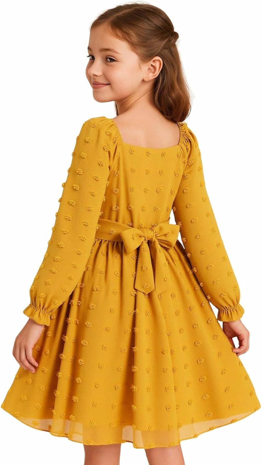 HILEELANG Girls Long Sleeve Princess Party Dress-Bow Tie Tulle Skirt Kids Holiday Birthday Wedding Outfit Ages 6-12