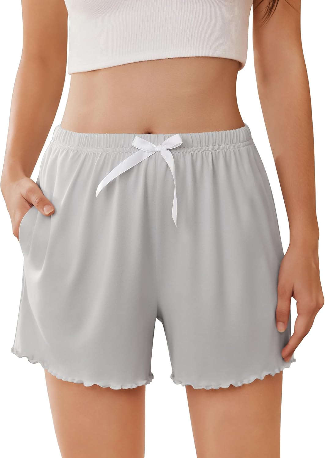 Ekouaer Womens Pajama Shorts Soft Comfy Ruffle Sleep Shorts 2026 Summer Casual Elastic Waist Pj Short with Pockets