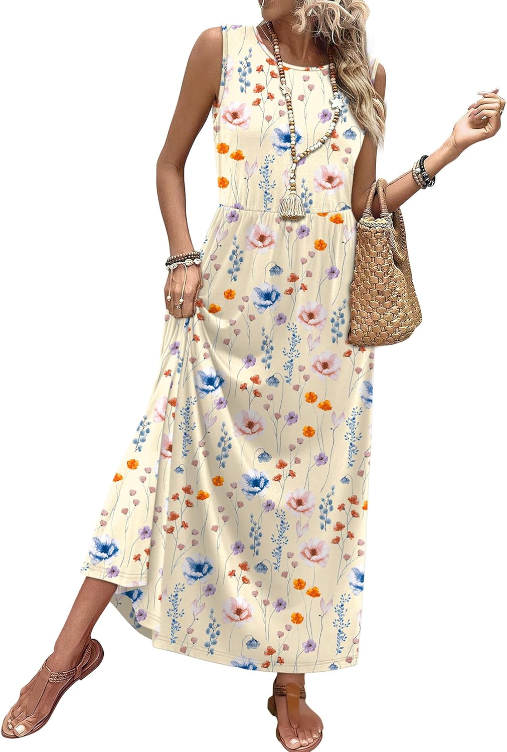WIHOLL Summer Dresses for Women 2026 Maxi Dresses Long Flowy A Line Sleeveless Sundresses with Pockets