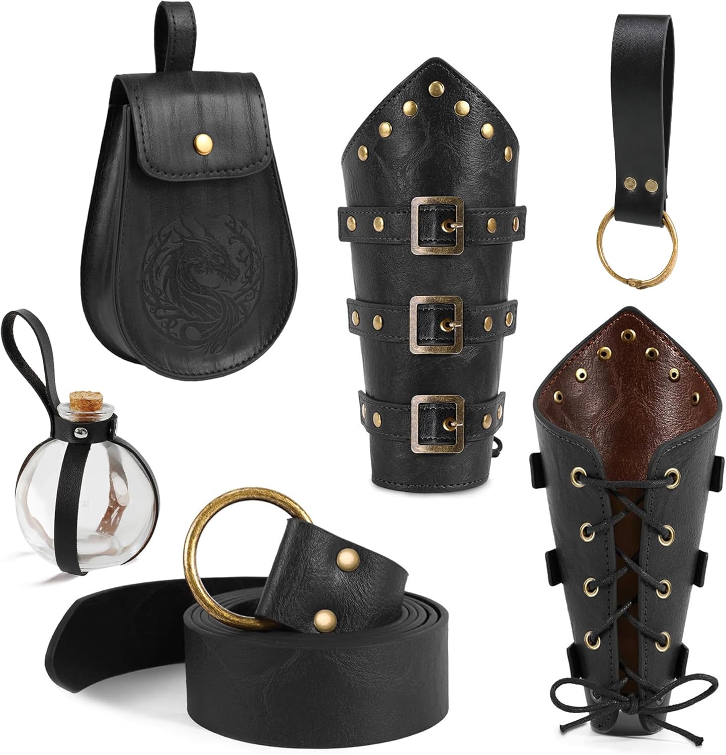 6 Pcs Renaissance Accessories Medieval Vintage Belt and Leather Bracers Viking Costume Set for Halloween and Cosplay