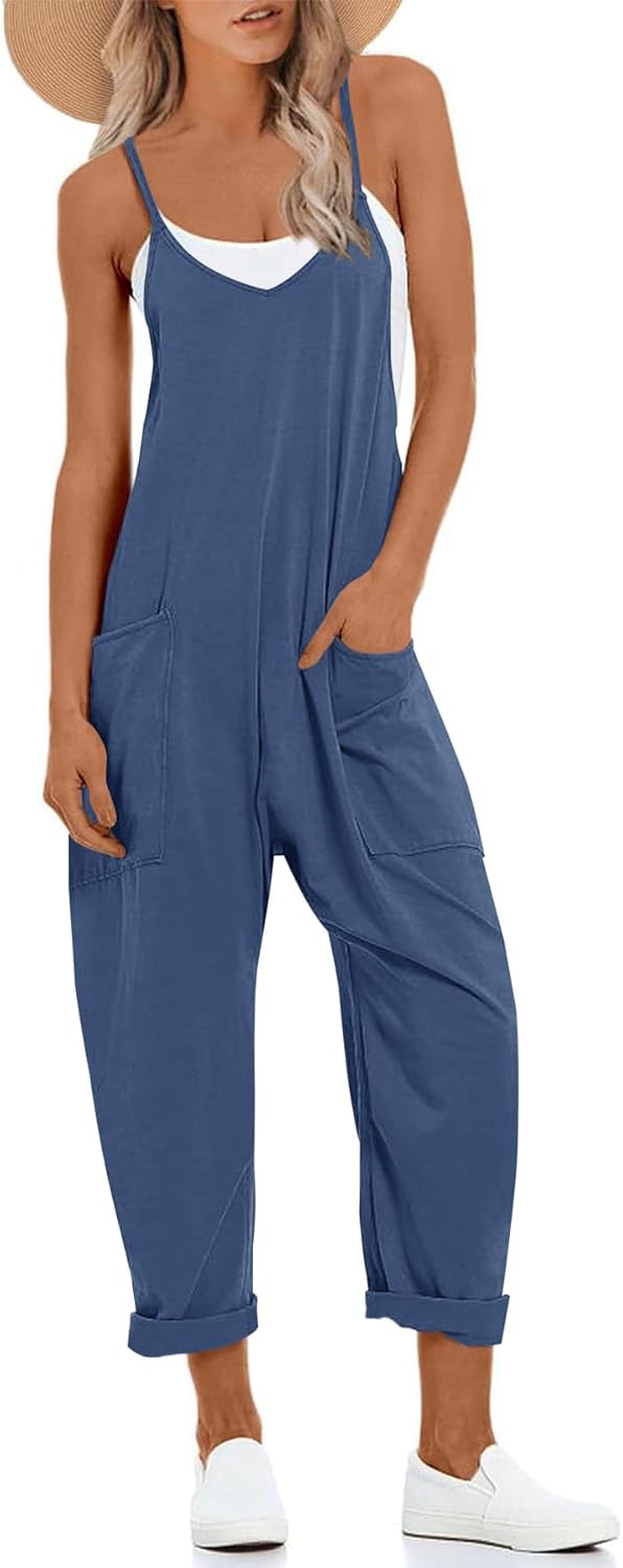 Muchpow Women's V Neck Sleeveless Jumpsuits Spaghetti Straps Harem Long Pants Overalls With Pockets
