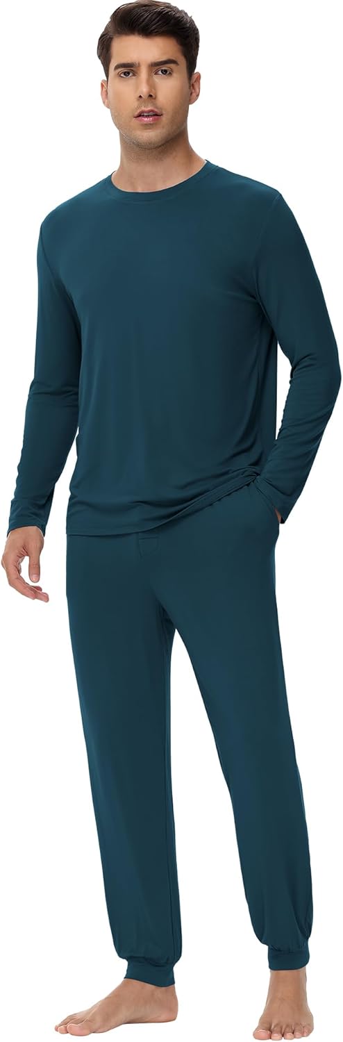 WiWi Men's Bamboo Viscose Pajama Sets Super Soft Long Sleeve Sleepwear Loungewear Cooling Pjs with Pockets Drawstring S-XXL