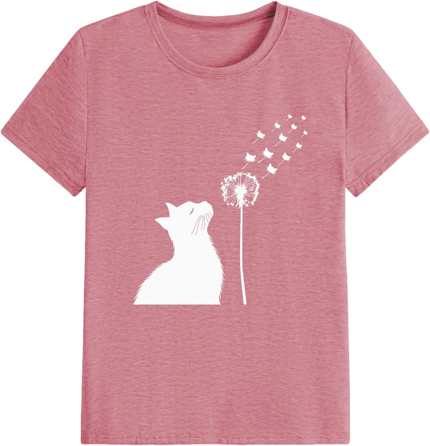 Cat Shirts for Women Butterfly Tee Shirts Womens Cute Butterfly Cat Graphic Print Tops