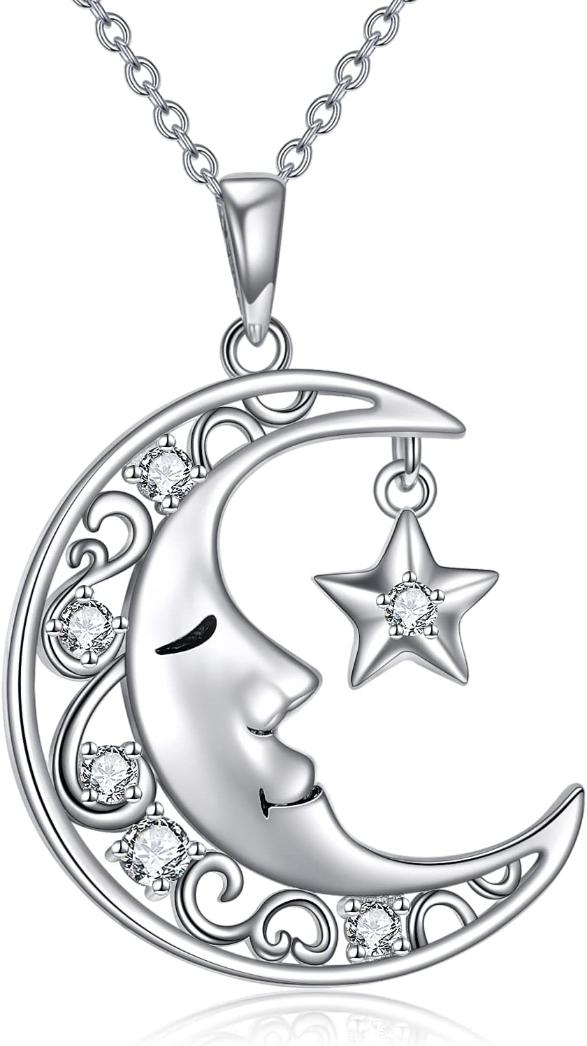 VONALA Moon Necklace 925 Sterling Silver Moon Star Pendant Crescent Moon Charm Necklace Jewelry Gift for Women