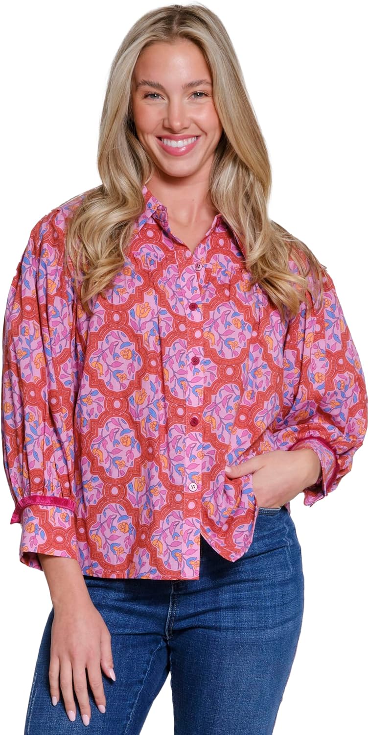 TRU LUXE Collard Print Button Up, Multi, XS