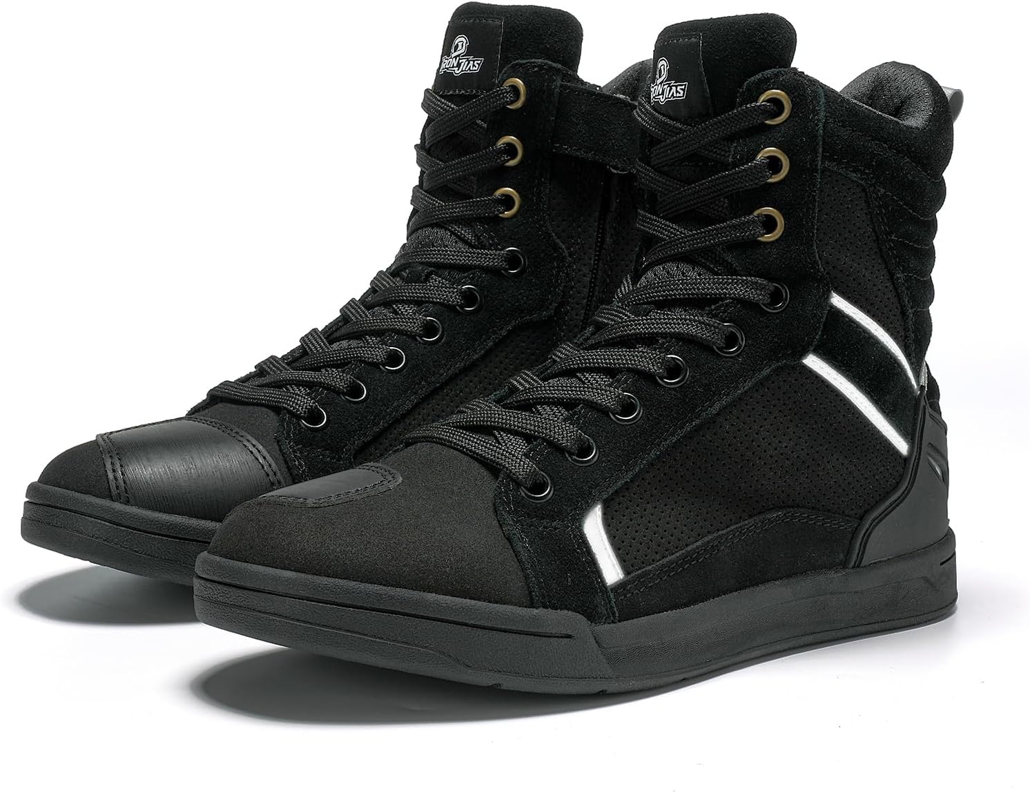 - 5.The high top motorcycle shoes are used the side zipper design,make putting on and taking off fast and easy, no longer need to tie your shoelaces frequently,secure and comfortable fit.