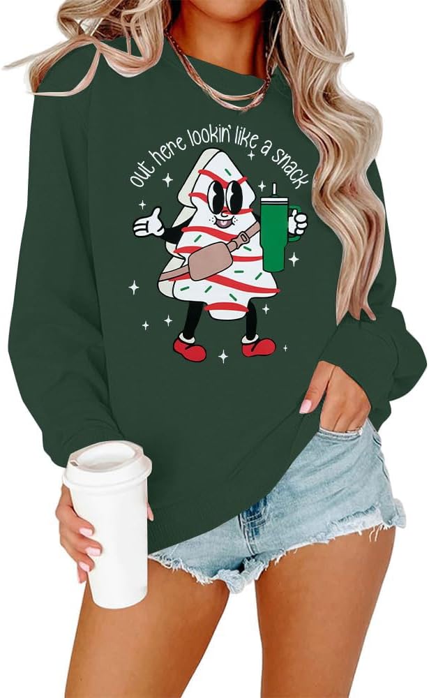 Christmas Sweatshirt Women Out Here Looking Like A Snack Shirt Farm Christmas Tree Pullover Casual Xmas Holiday Top