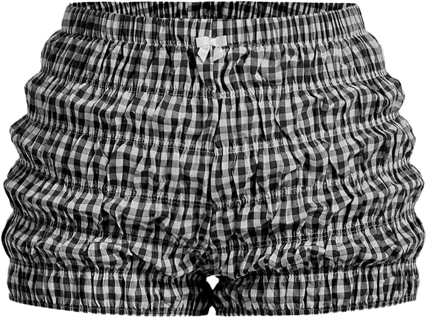 SHENHE Women's Plus Size Plaid Ruched Bloomer Shorts Elastic Waist Cute Mini Shorts