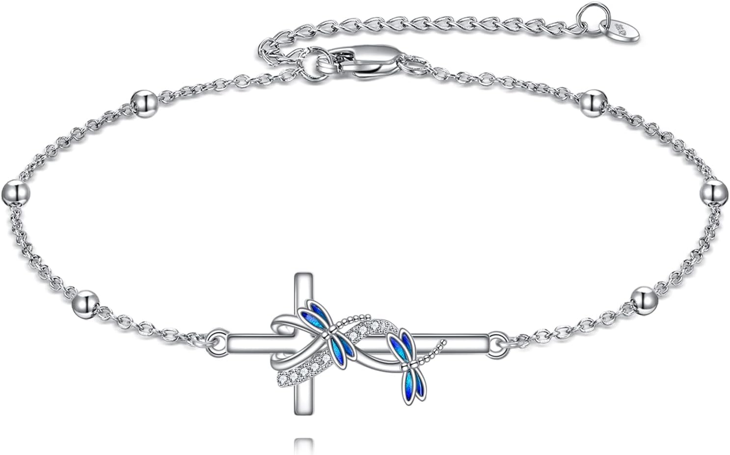 POPLYKE Cross Bracelet Anklet for Women Sterling Silver Ladybug/Dragonfly/Butterfly/Bee Bracelet Anklet Cross Jewelry Gift for Women