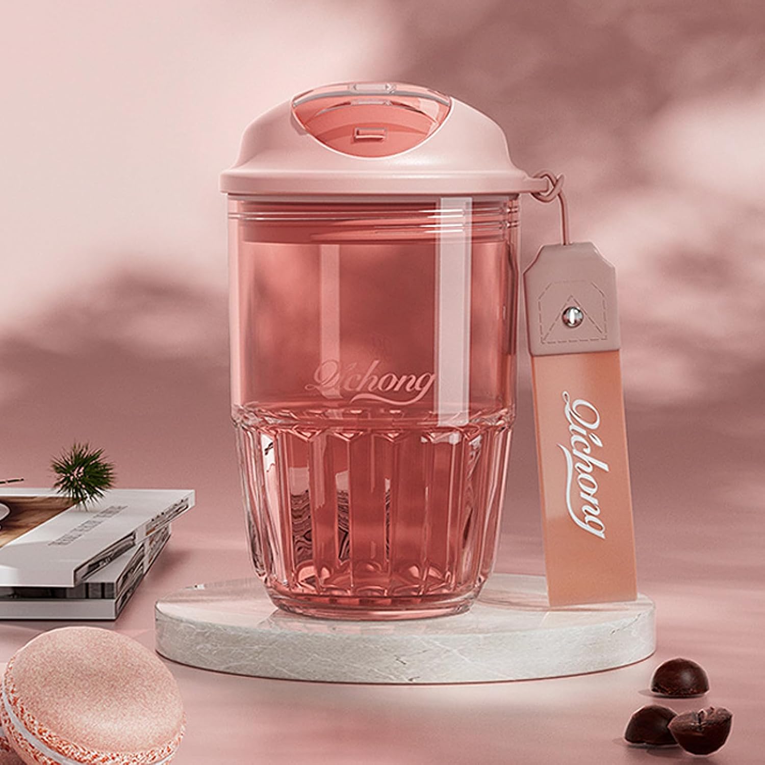 - [Product Features ] 1. This stylish coffee cup features a simple lid design and a straight drinking spout. Very easy to drink coffee or water. 2. Transparent and clean cup body, with a capacity of 14oz, just enough to drink a cup of coffee every day and enjoy a comfortable life. 3. The unique water ripple TRITAN cup body is small and easy to grasp with one hand. 4. Seal the cup lid and swing it freely without leakage.