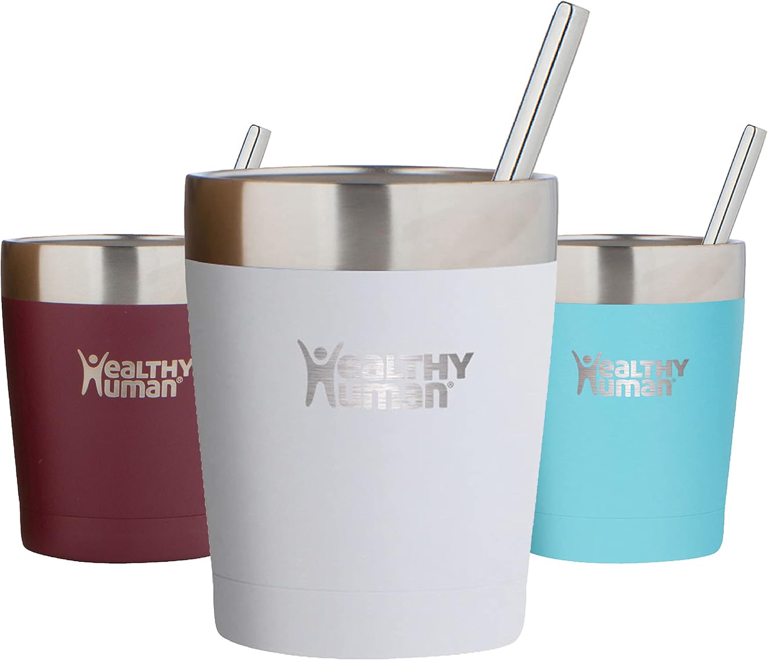 Healthy Human Stainless Steel Tumbler with Straw | Splash Proof Insulated Travel Cruiser Cup | Eco-Friendly Coffee Tumblers with Straws Cleaner & Splash Proof Lid (12oz, Pure White)