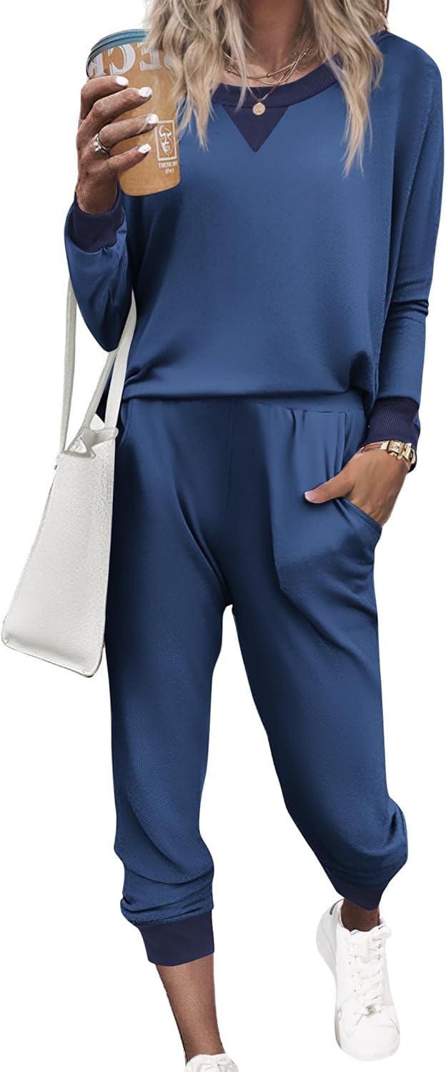 Ekouaer Pajamas Set Long Sleeve Pj Sets 2 Piece Jogger Pajama Sets Soft Sleepwear Loungewear for Women