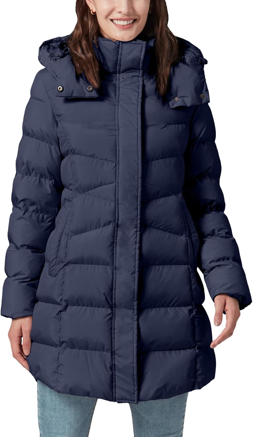 Women's Winter Warm Long Puffer Jacket Detachable Hood Quilted Thicken Coats