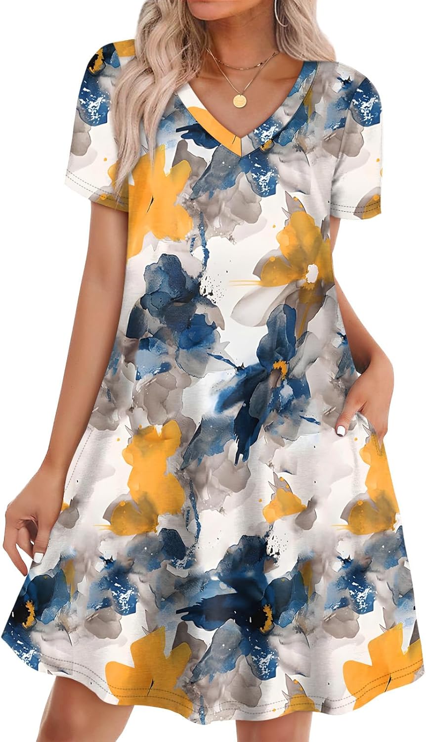 WIHOLL Dresses for Women Casual Summer Loose T Shirt Dress with Pockets Beach Vacation Outfits S-4XL
