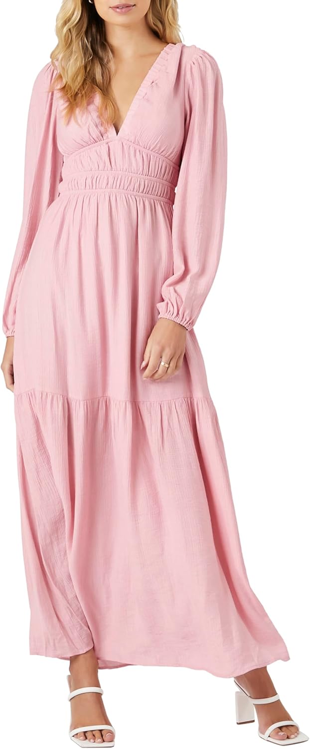 Forever 21 Womens Crepe Peasant-Sleeve Maxi Dress