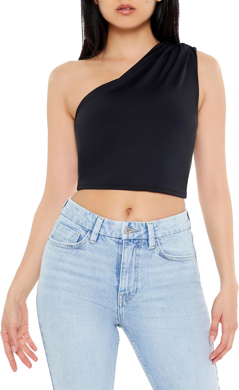Forever 21 Womens Ruched One-Shoulder Crop Top