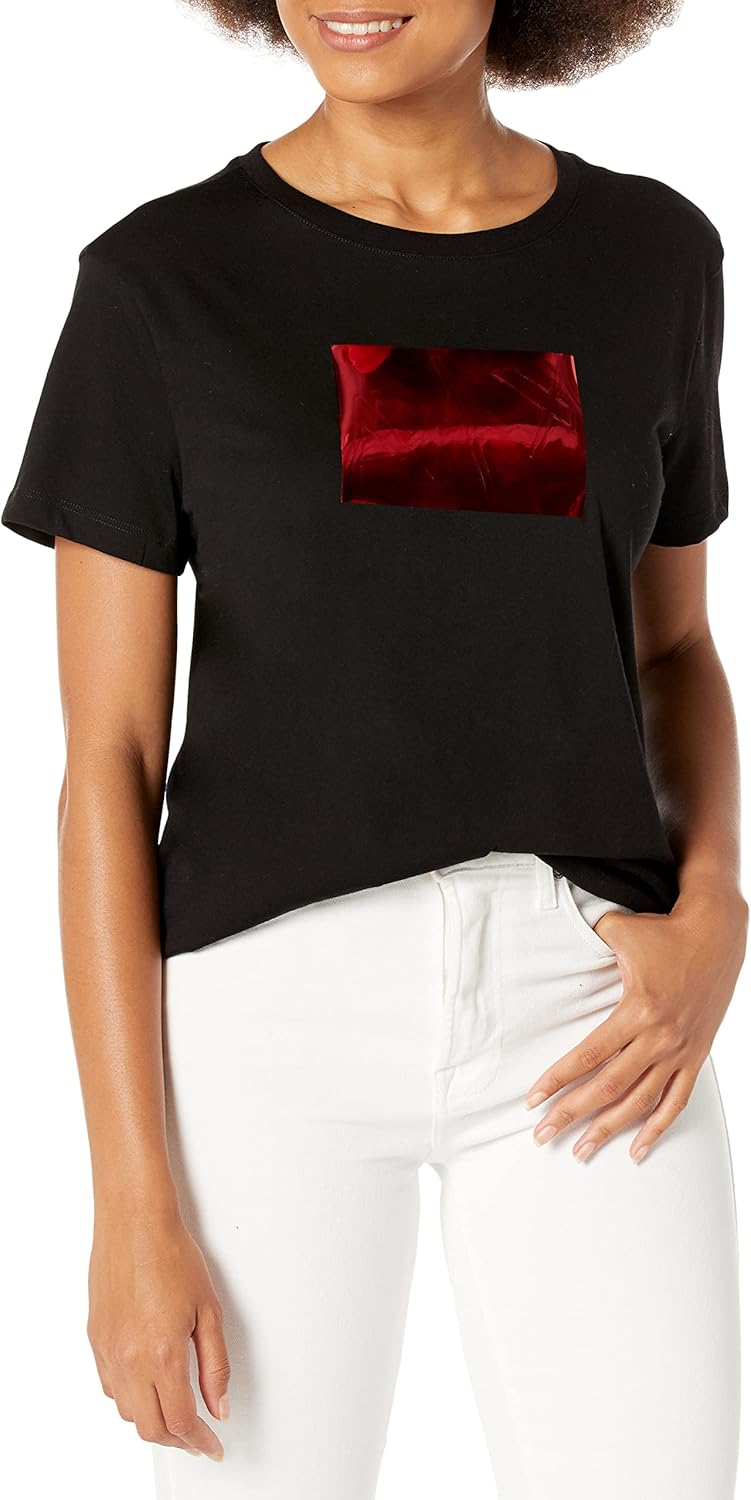 Armani Exchange Women's Shiny Box Logo Tee, Black, Medium