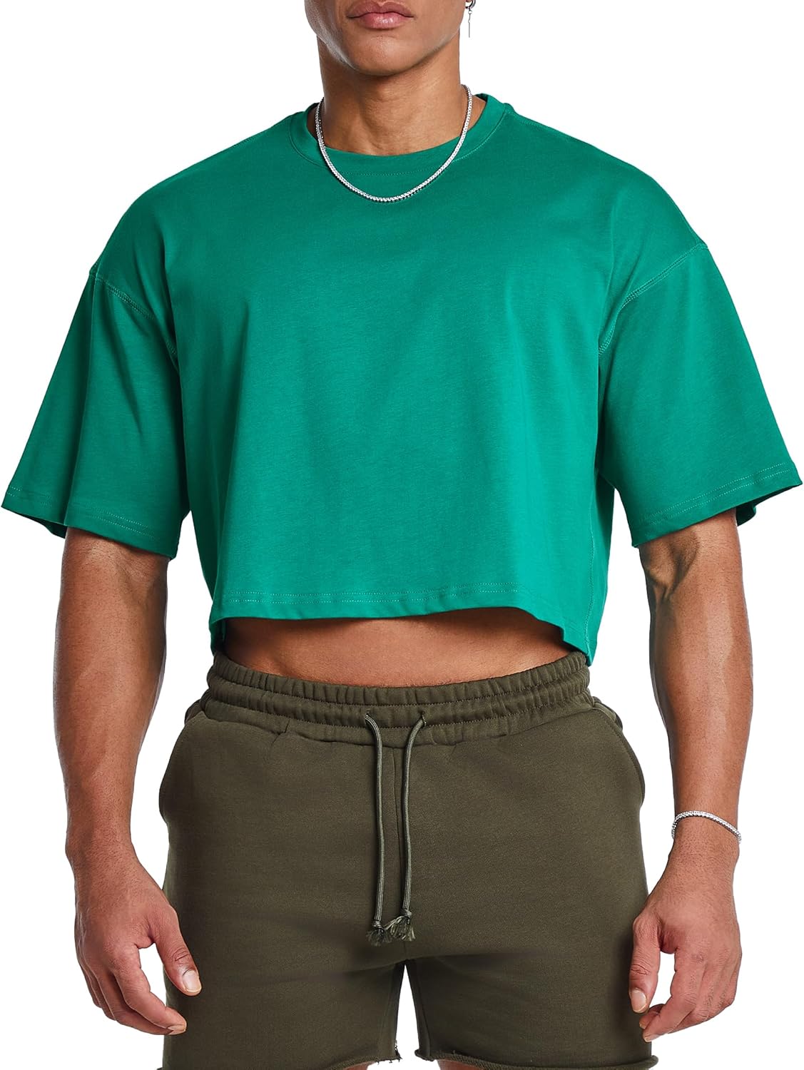 Ouber Men's Short Sleeve Crew Crop T Shirts Cotton Muscle Bodybuilding Shirts