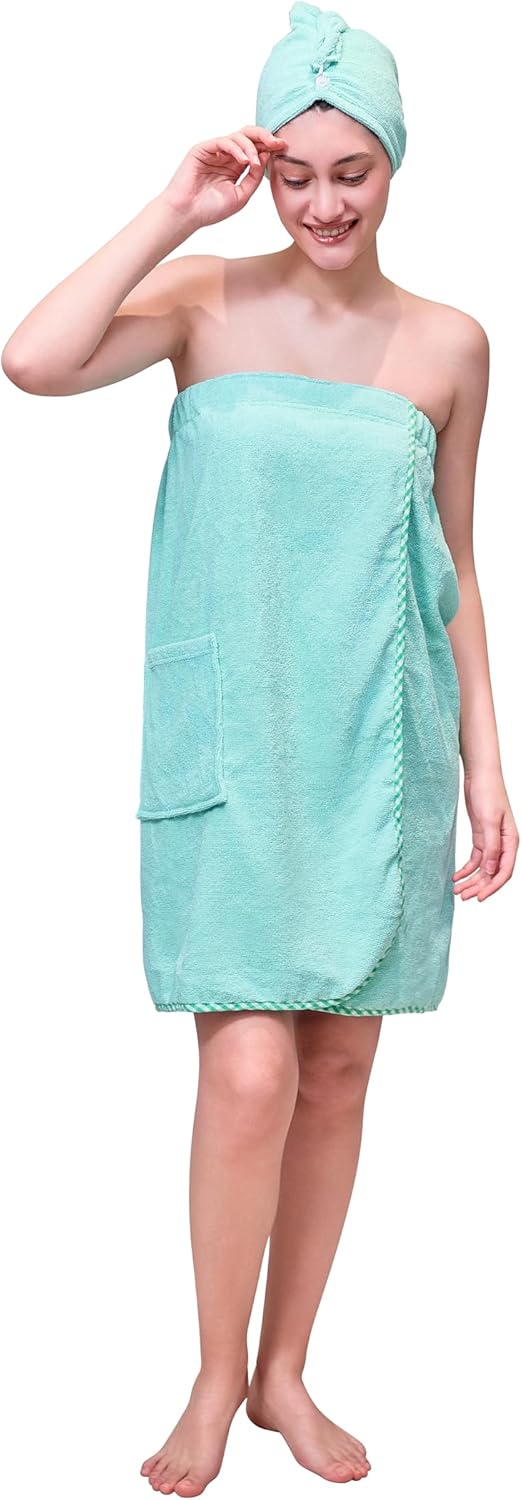 Women's Lightweight Velcro Spa Wrap with Hair towel Body Wrap after Shower Adjustable Closure Bathrobe