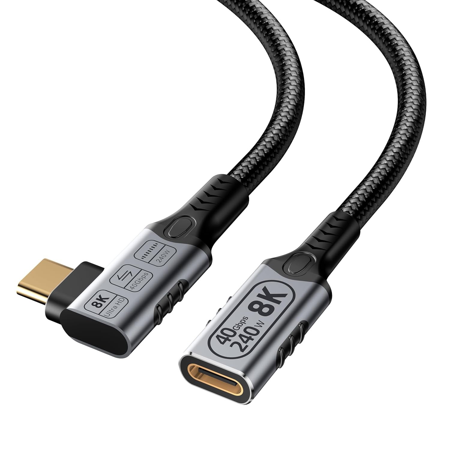 right angle type c extension 3.3FT/1M for Thunderbolt 4 Extension Cable high Speed 40Gbps Data Transfer, 8k/4k@60hz video,240w Fast Charging,male to female usb-c high speed 90 degree extension cable.