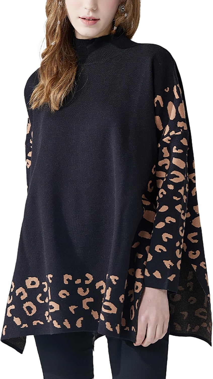 noflik Long Sleeves Leopard Animal Print Winter Cozy Sweater Tunic
