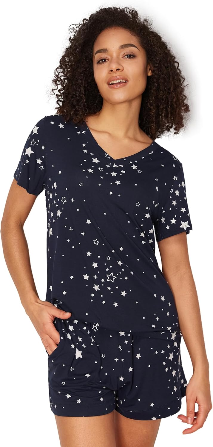 GYS Bamboo Viscose Pajamas for Women Set, Soft Short Sleeve Top and Shorts Sleepwear, Comfy Lightweight Lounge Pajama Set