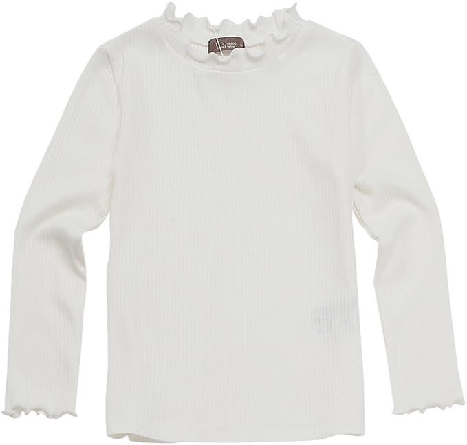 Girls Ribbed Long Sleeve Lettuce Mock Neck Top with Ruffle Trim, Buttery Soft Stretch T-Shirt Ruffled Neckline